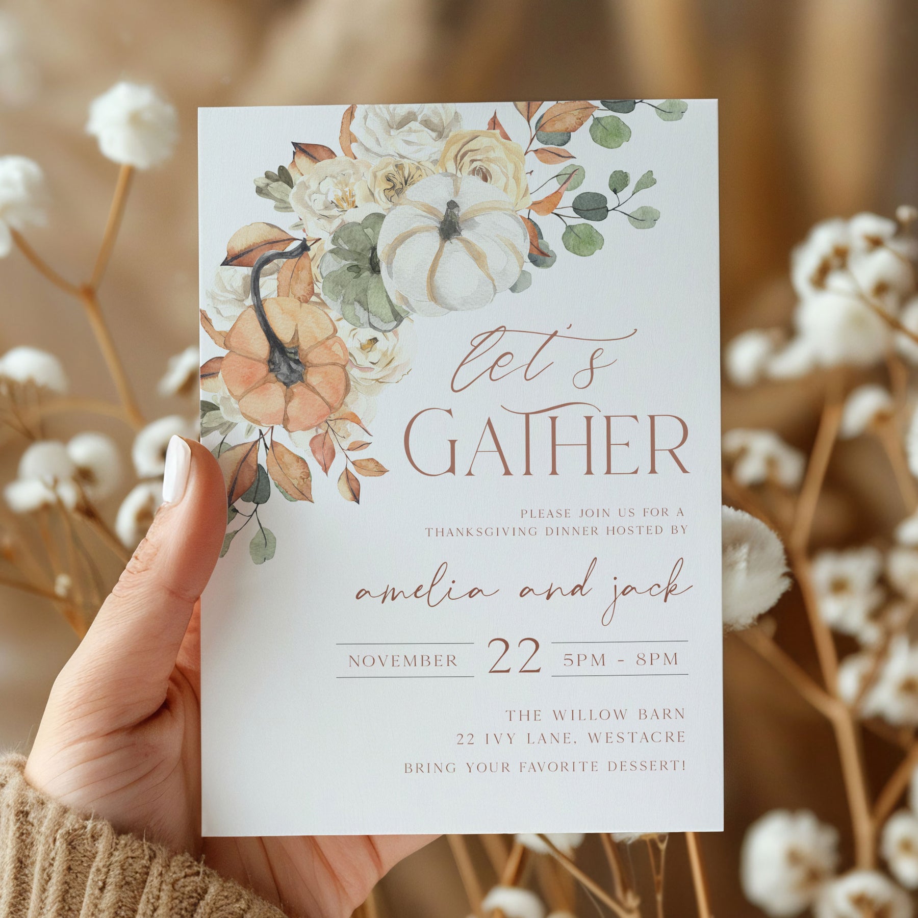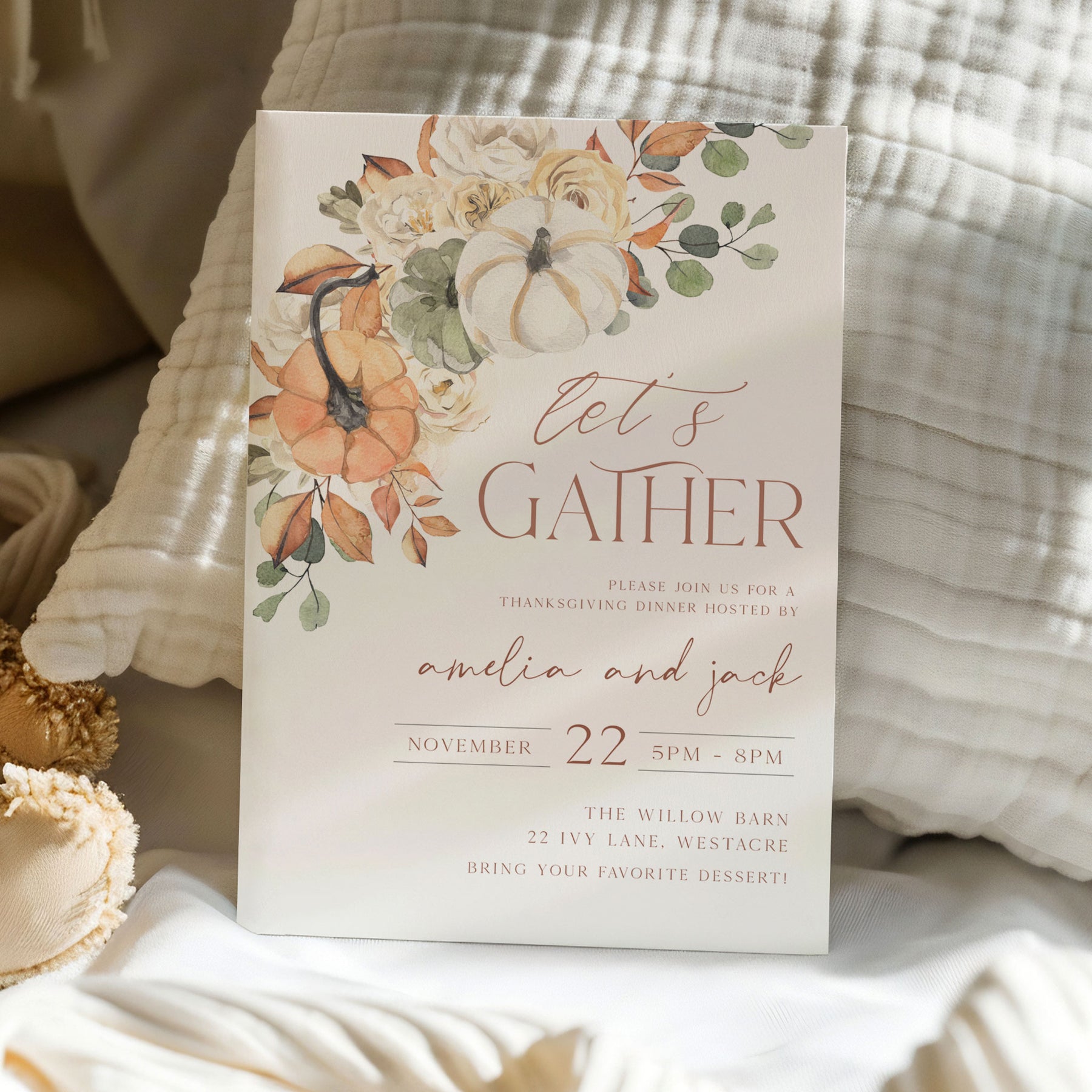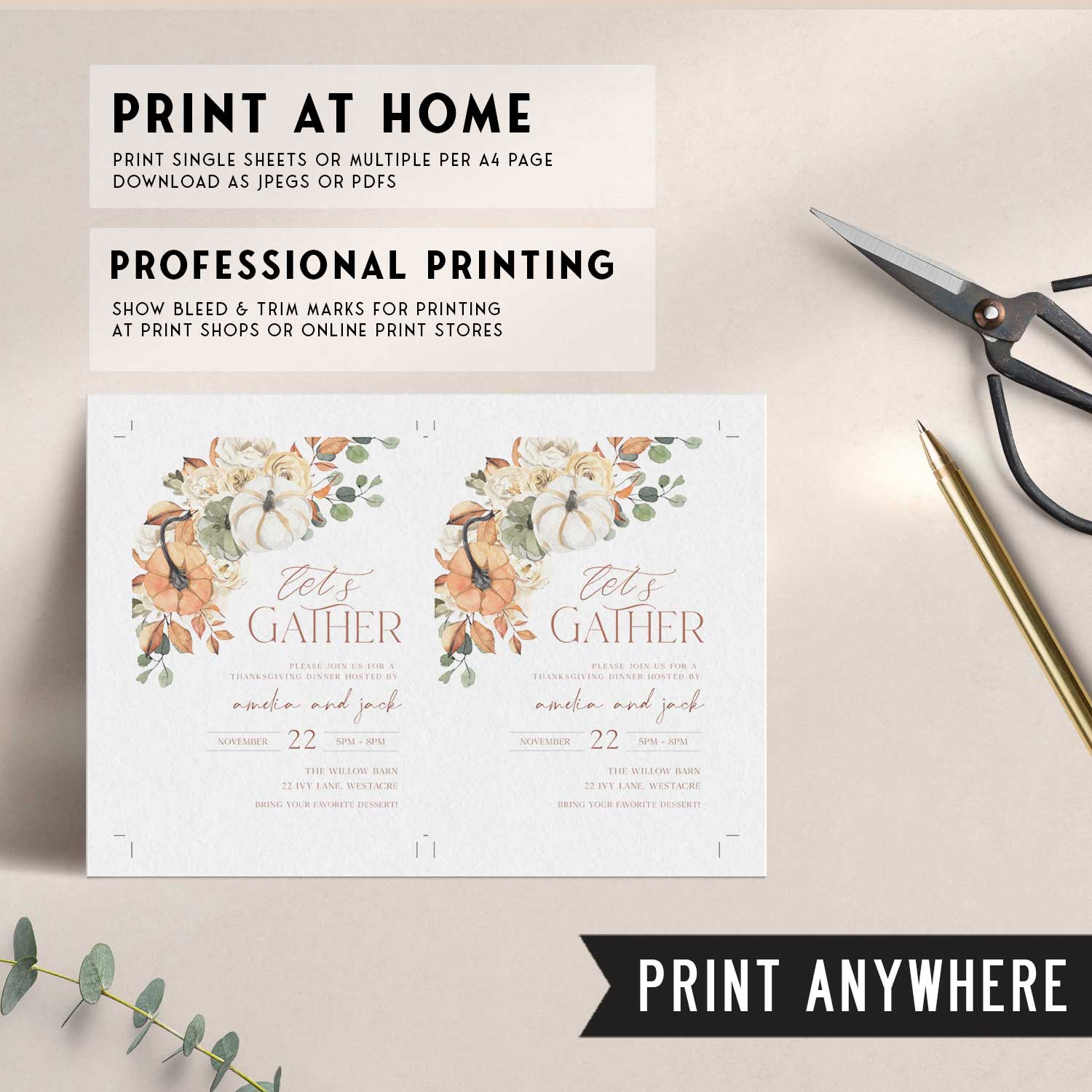 Make your Thanksgiving celebration extra special with our Editable Thanksgiving Dinner Invitation Set. Adorned with cozy autumn-themed illustrations. Customize the text to include your name, event details, and a warm holiday message. Whether you choose to print or share digitally, our versatile set offers convenience and a festive touch for any Friendsgiving or Thanksgiving gathering.