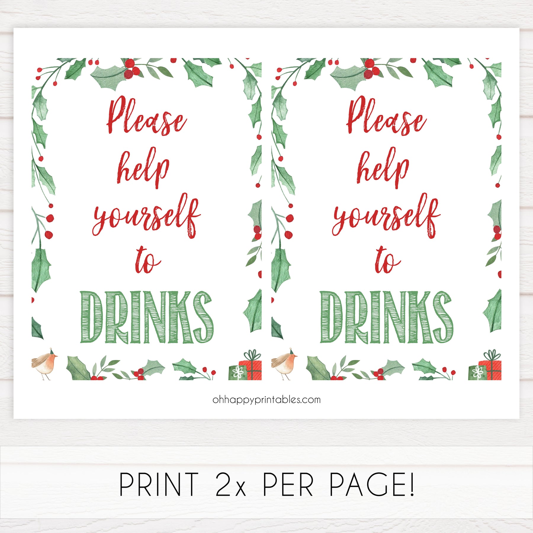 Christmas baby shower signs, drinks baby shower sign, baby shower decor, printable baby signs, baby decor, festive baby shower