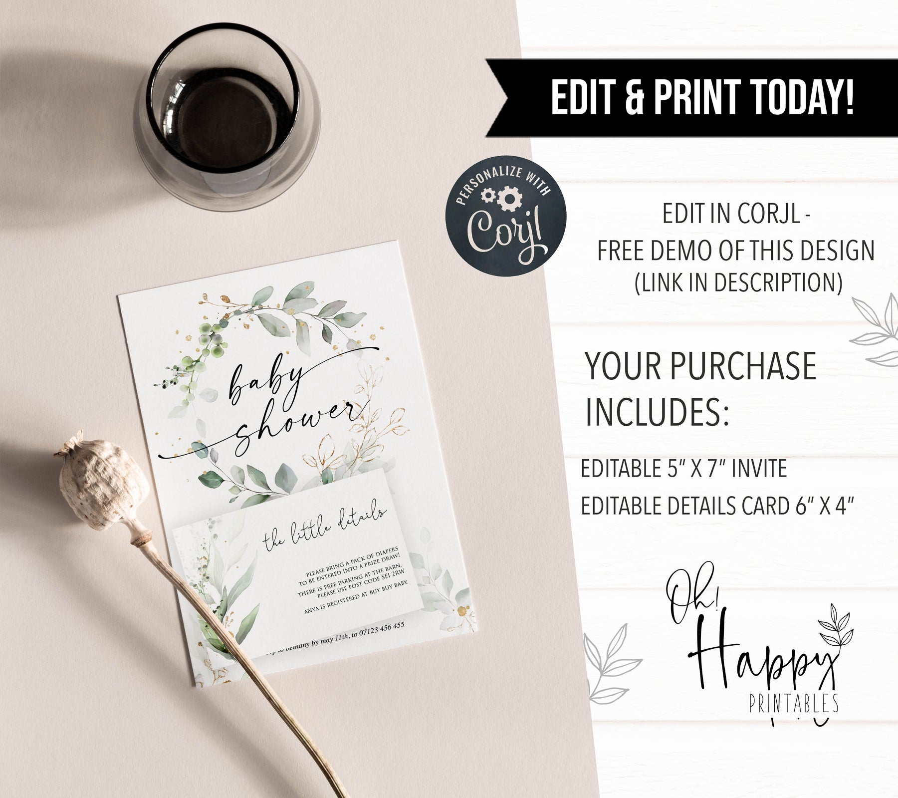 From our best-selling baby shower invitations, including a details card, it has everything your friends and family need to make it a party to remember. Download immediately and edit yourself, it couldn't be simpler!