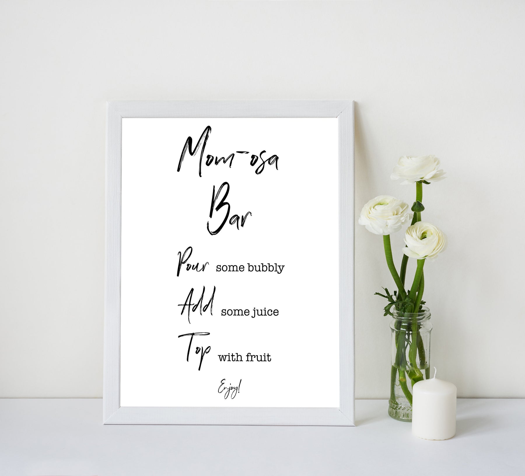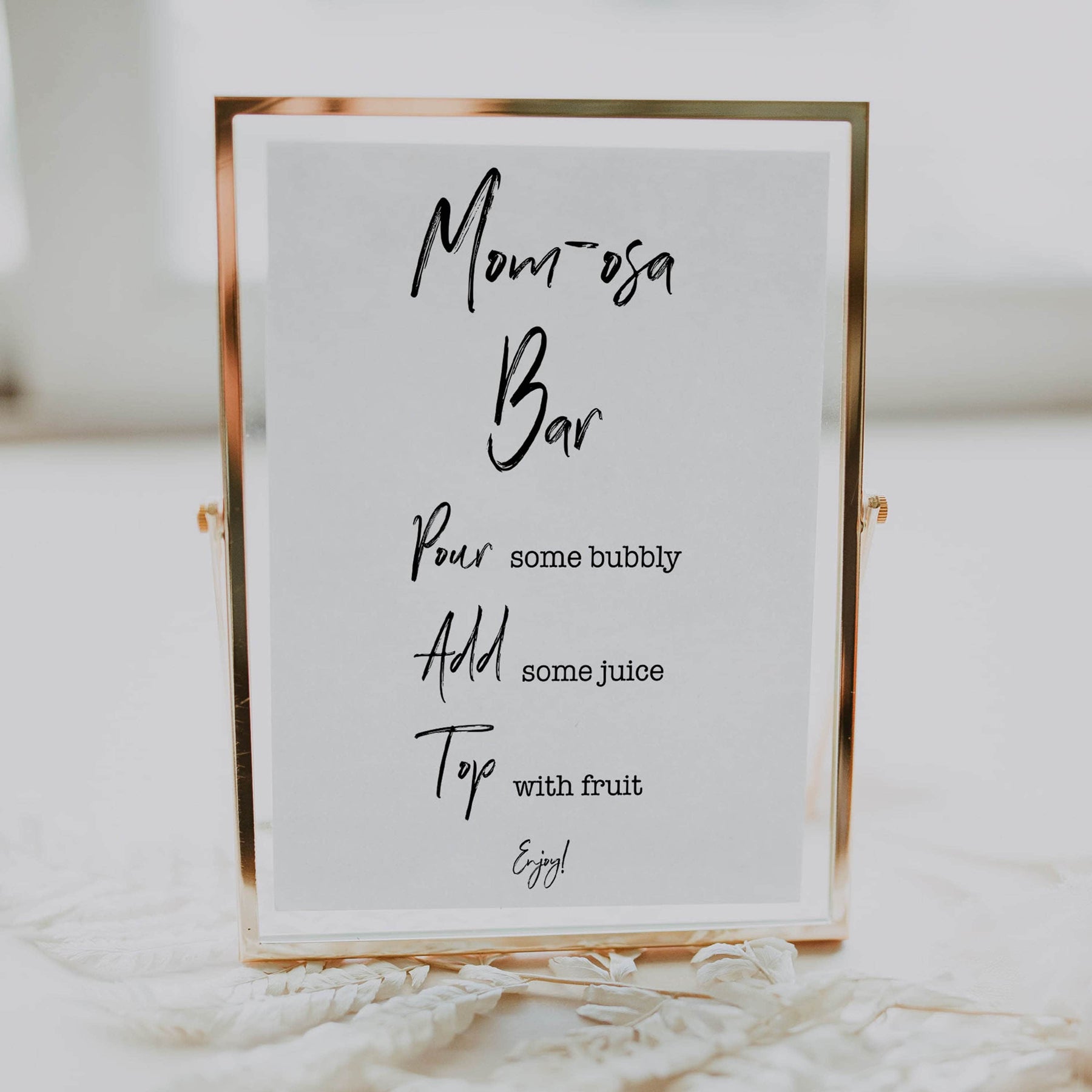 Add the finishing touch to your baby shower with this 'Momosa' table sign.