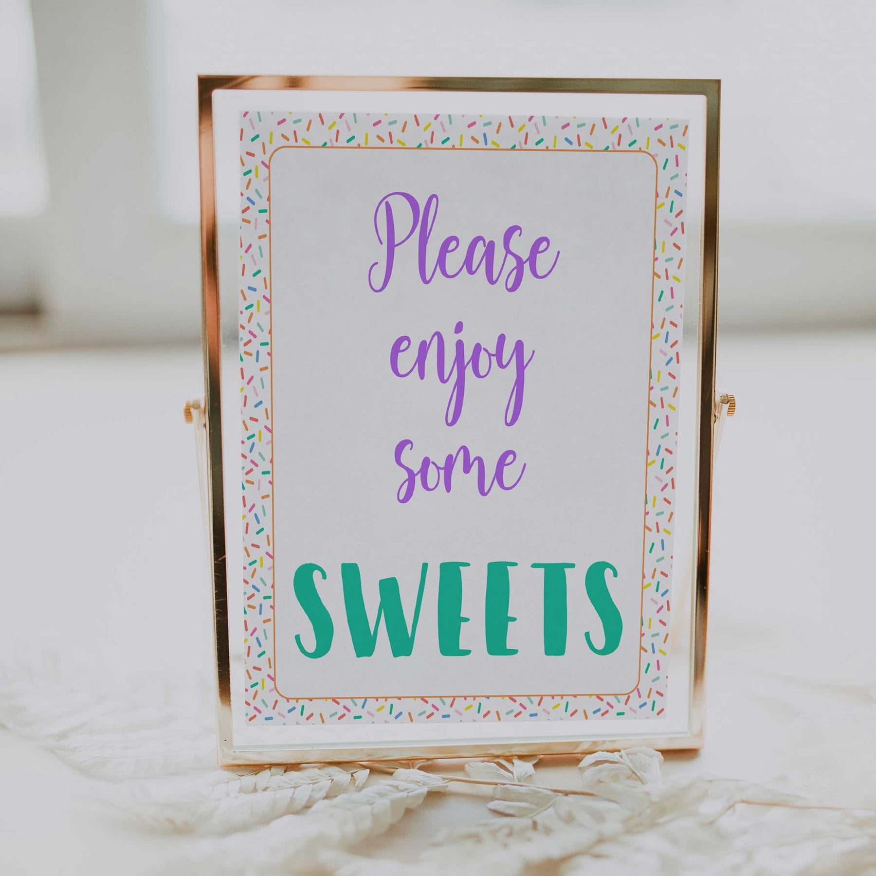 Add the finishing touch to your baby shower with this 'Sweets' table sign.