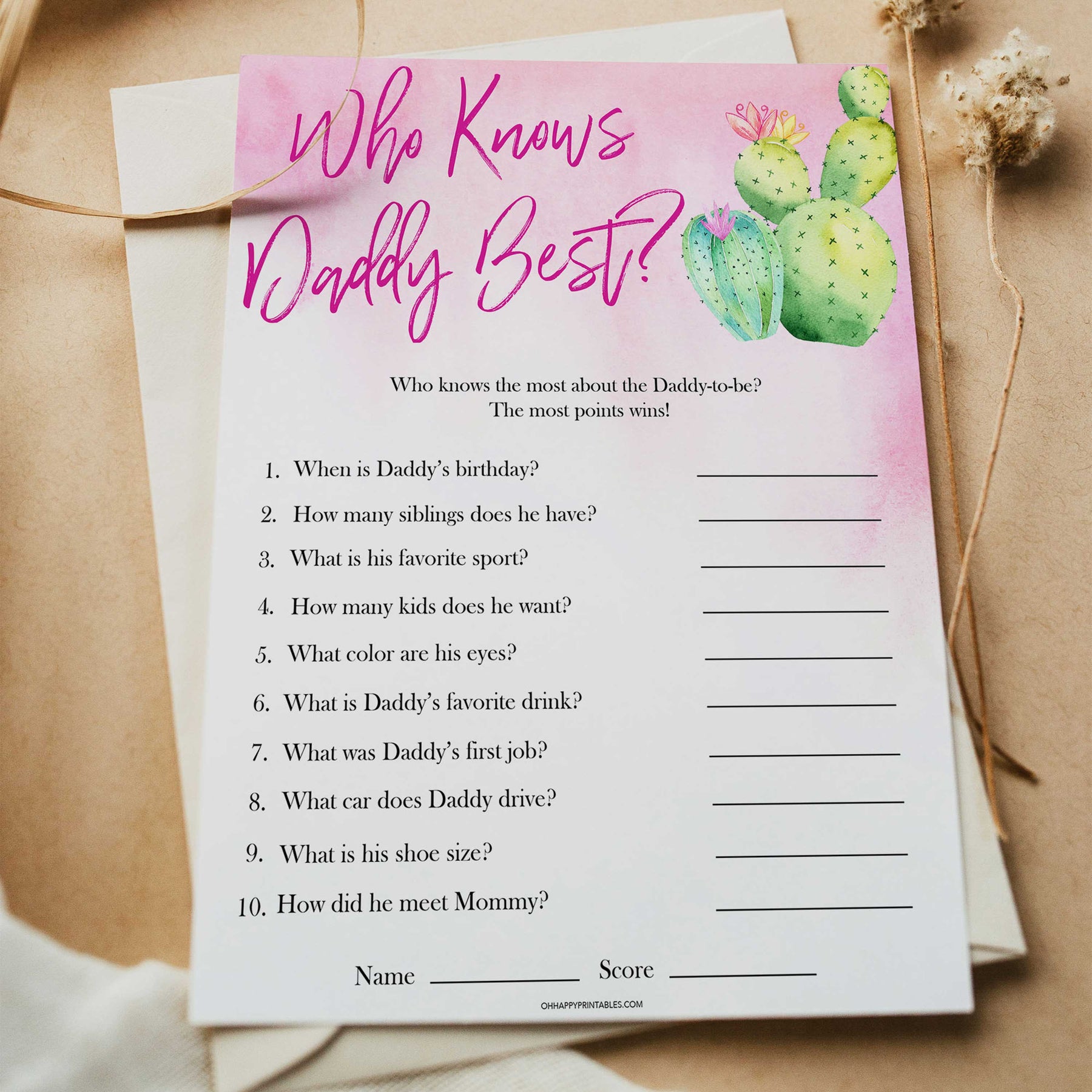 Cactus baby shower games, cactus who knows daddy best baby game, printable baby games, Mexican baby shower, Mexican baby games, fiesta baby games, popular baby games, printable baby games