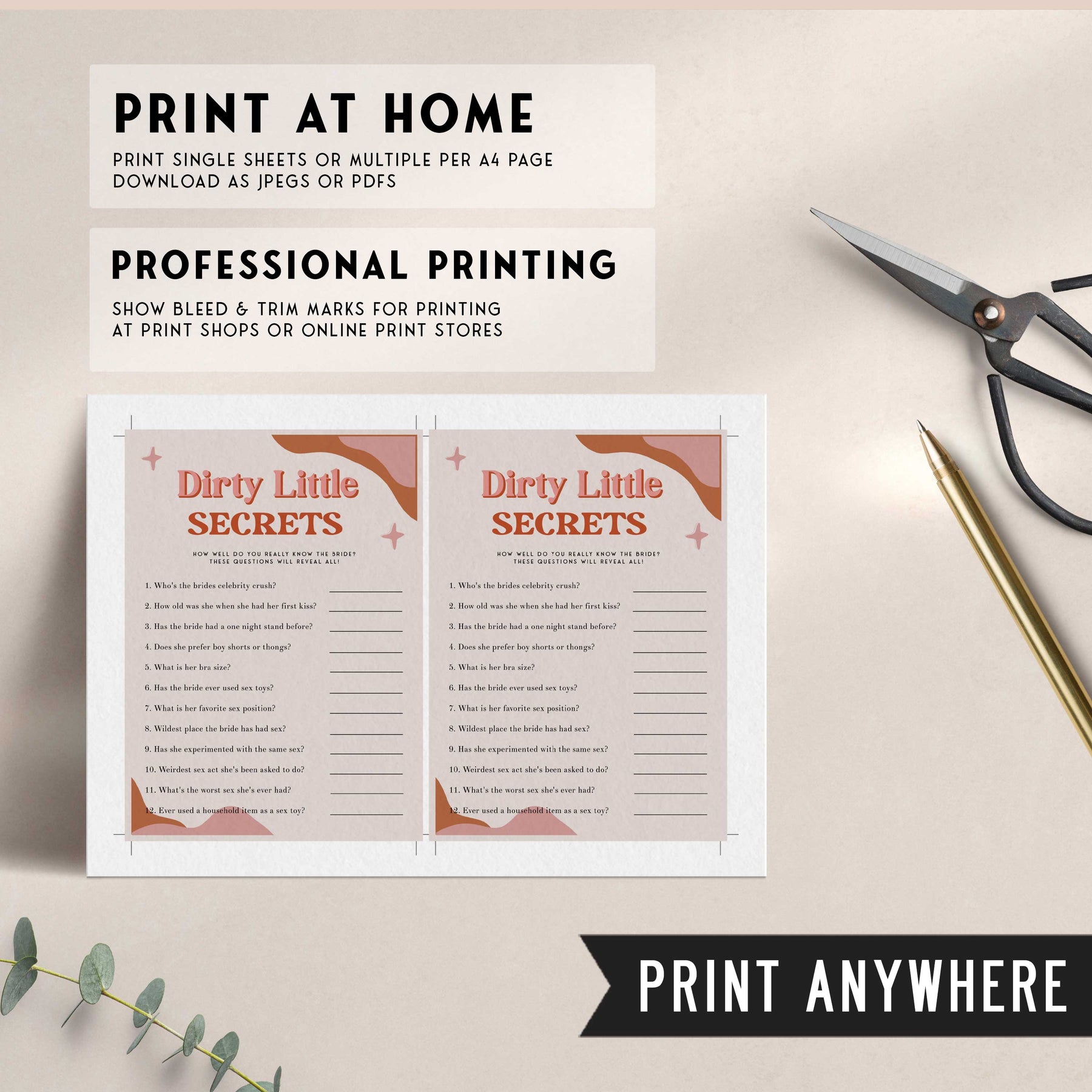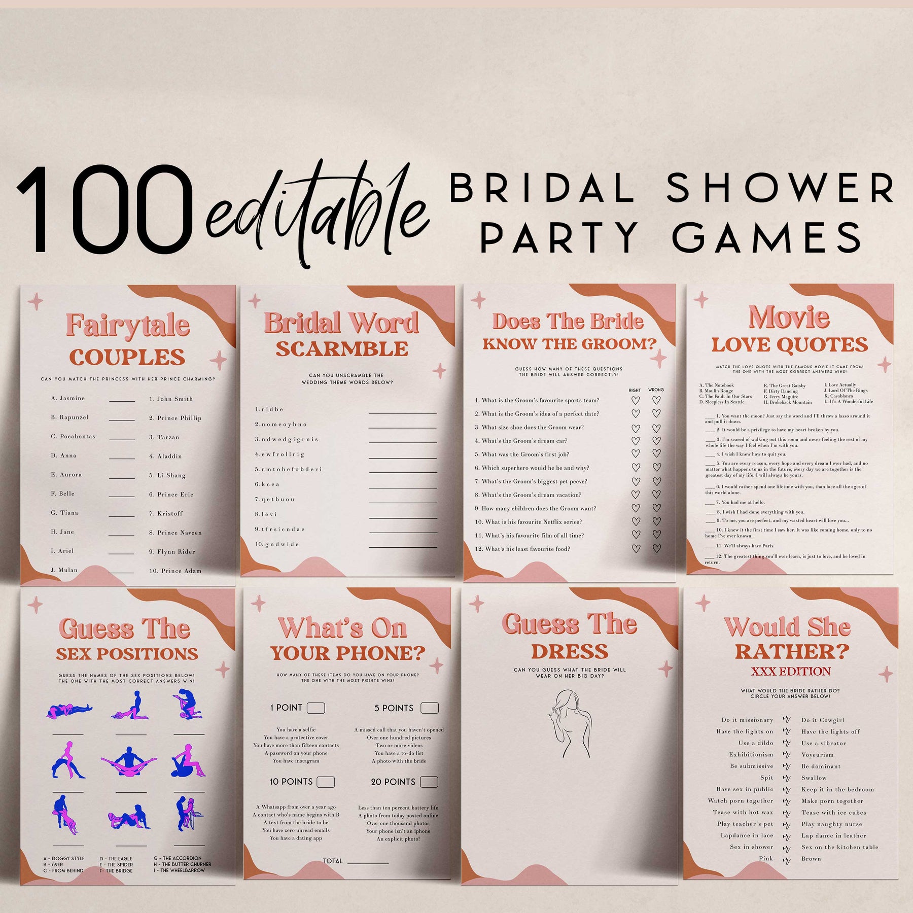 100 EDITABLE Bridal Shower Games - Retro