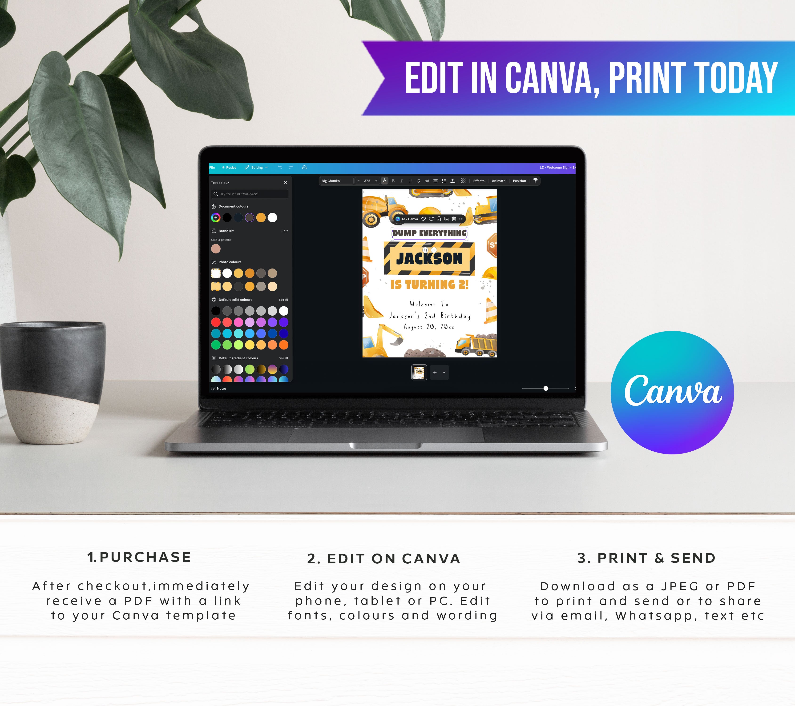 2nd Birthday Construction Border Welcome Sign