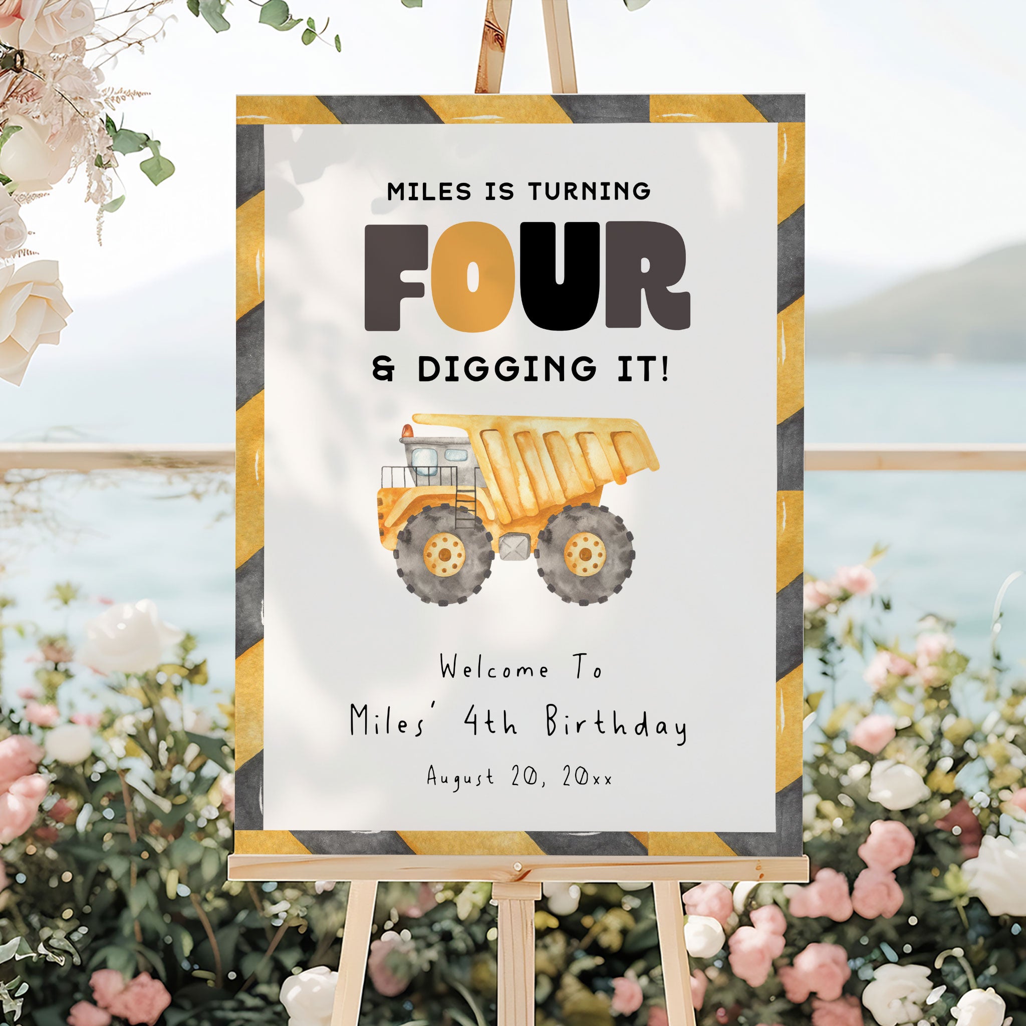 4th Birthday Construction Truck Welcome Sign