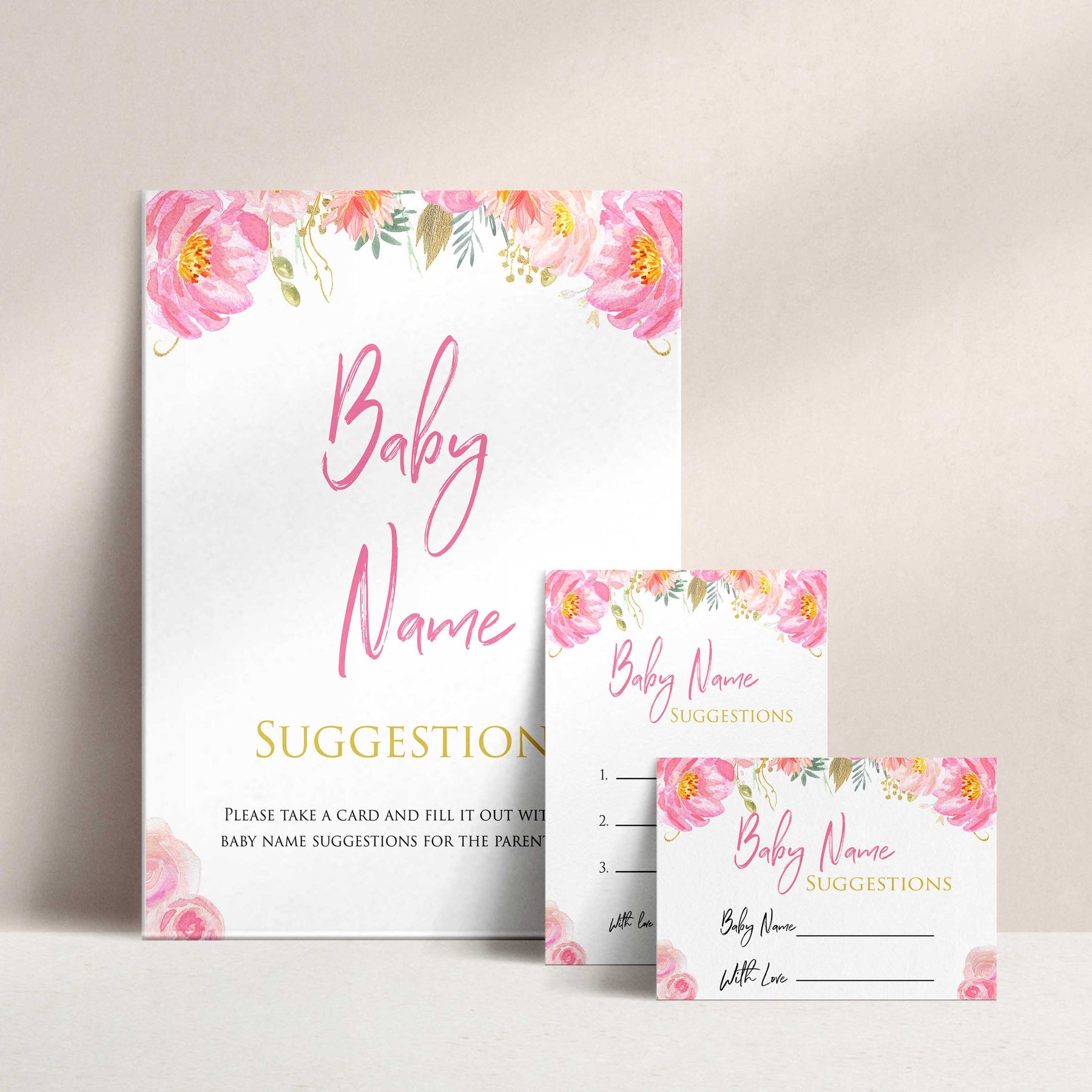 blush flora baby name suggestion game, printable baby games, baby shower games, floral baby games, floral baby shower, girl baby shower idea, girl baby games