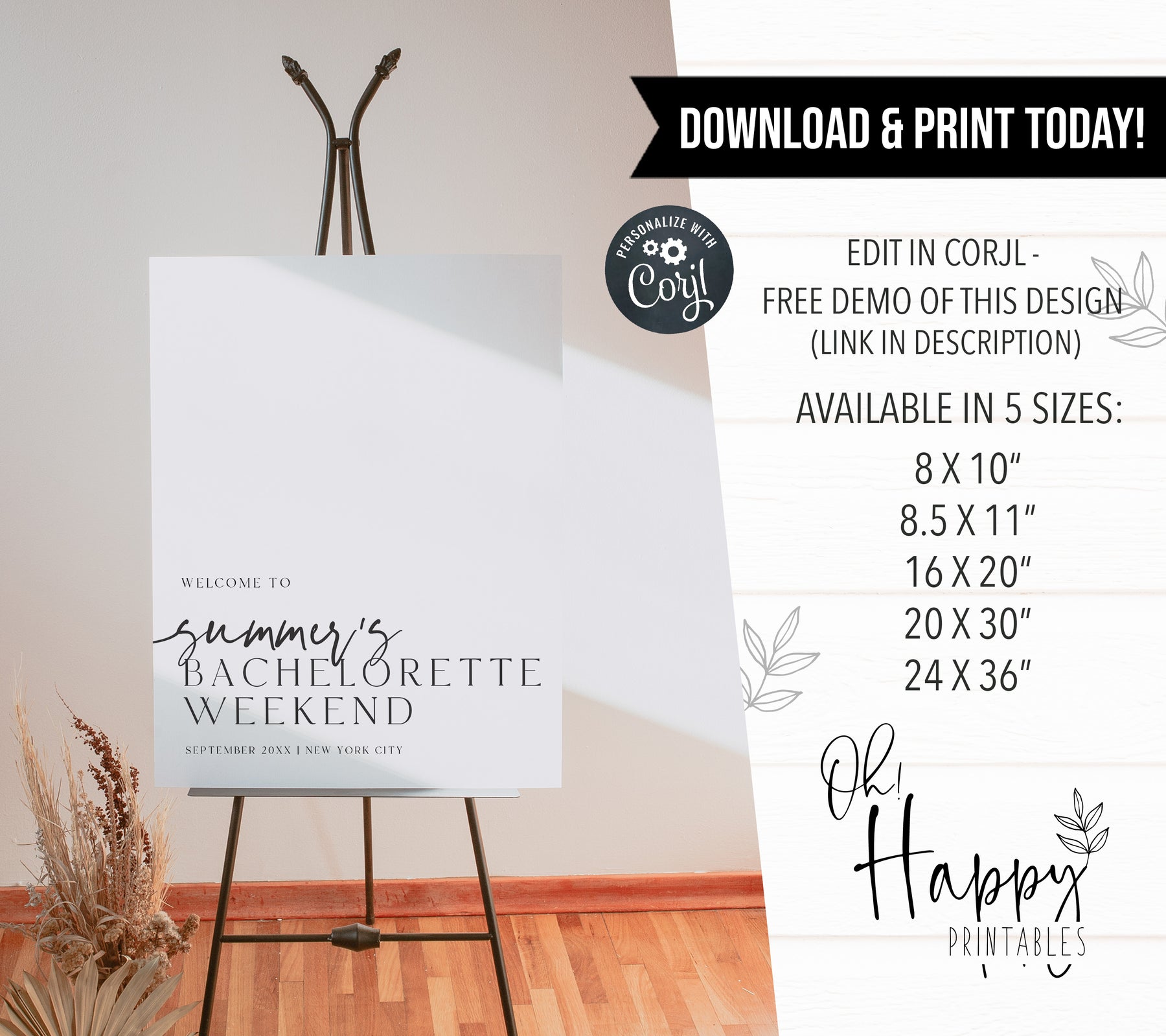 Fully editable, printable and mobile bachelorette invitation and welcome signs with a modern minimalist design. Perfect for a modern minimalist Bachelorette themed party