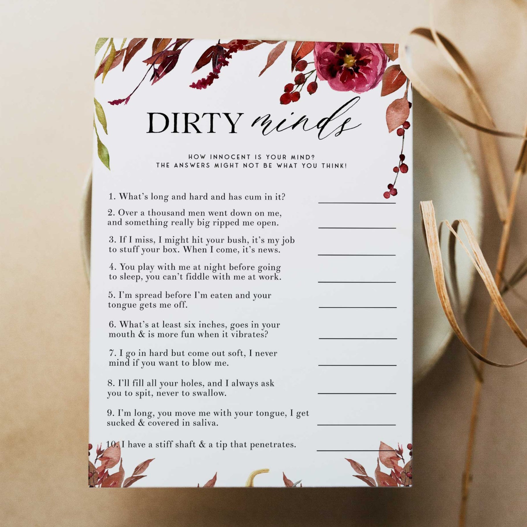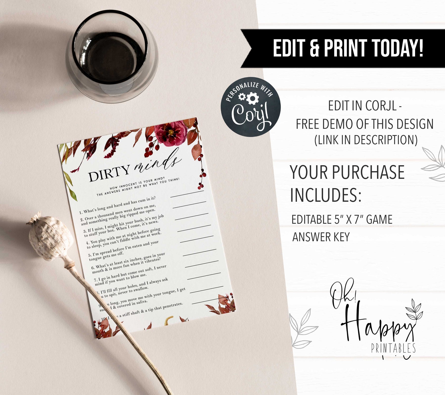 Can you guess the innocent answers from the rather naughty clues? If you have a dirty mind, some of the real answers might be impossible to guess! A hilarious game for a Bachelorette party that will have everyone in stitches.