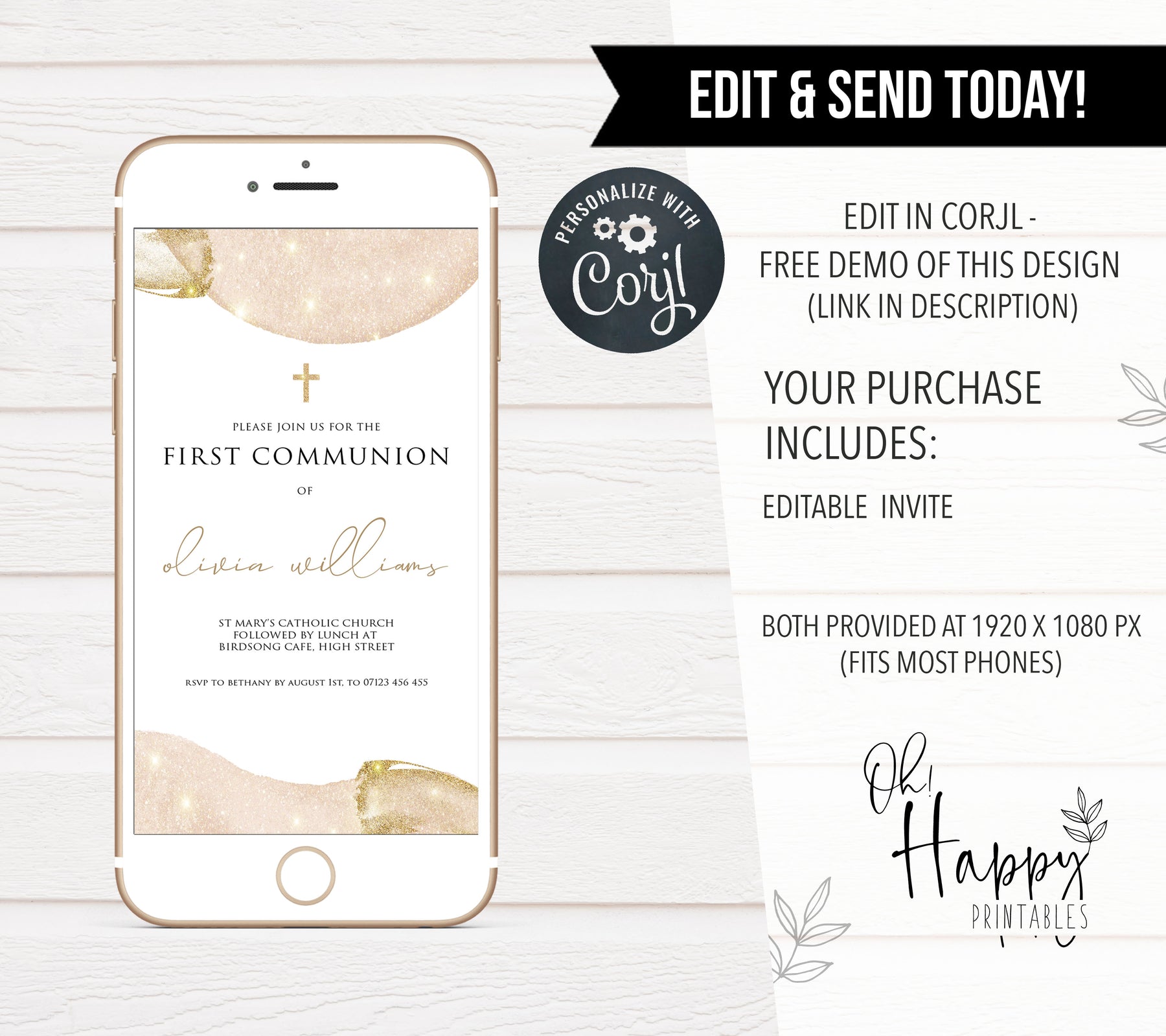 Celebrate this momentous occasion with our editable First Communion invitations. Beautifully designed to add the finishing touch to your celebrations, all you need to do is download, edit and send. It couldn’t be easier.
