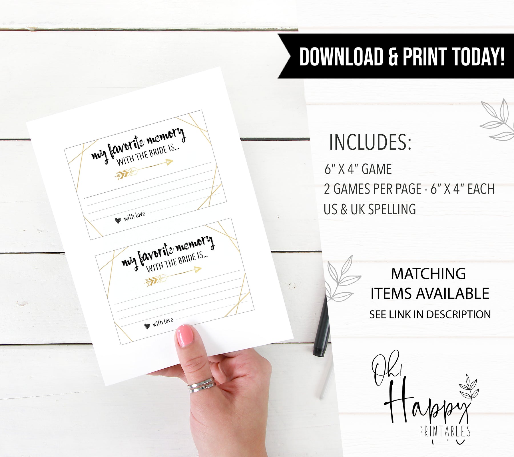 A beautiful keepsake for the Bride to Be, our Favourite Memory with the Bride cards make the perfect addition to your Bridal Shower. Turn it into a game by getting the guests to fill them out anonymously, and then see if the Bride can guess who wrote which one! Put them into a treasure box for her to keep for years to come.