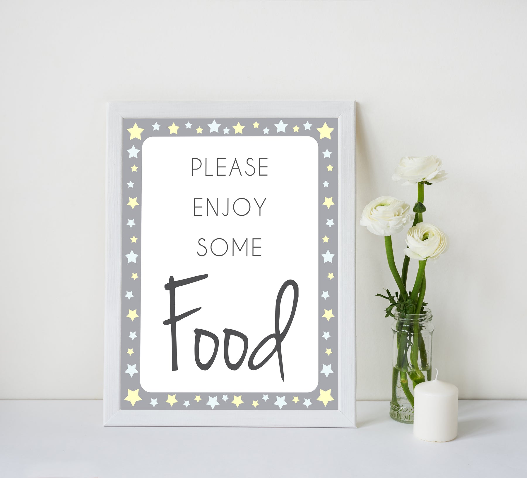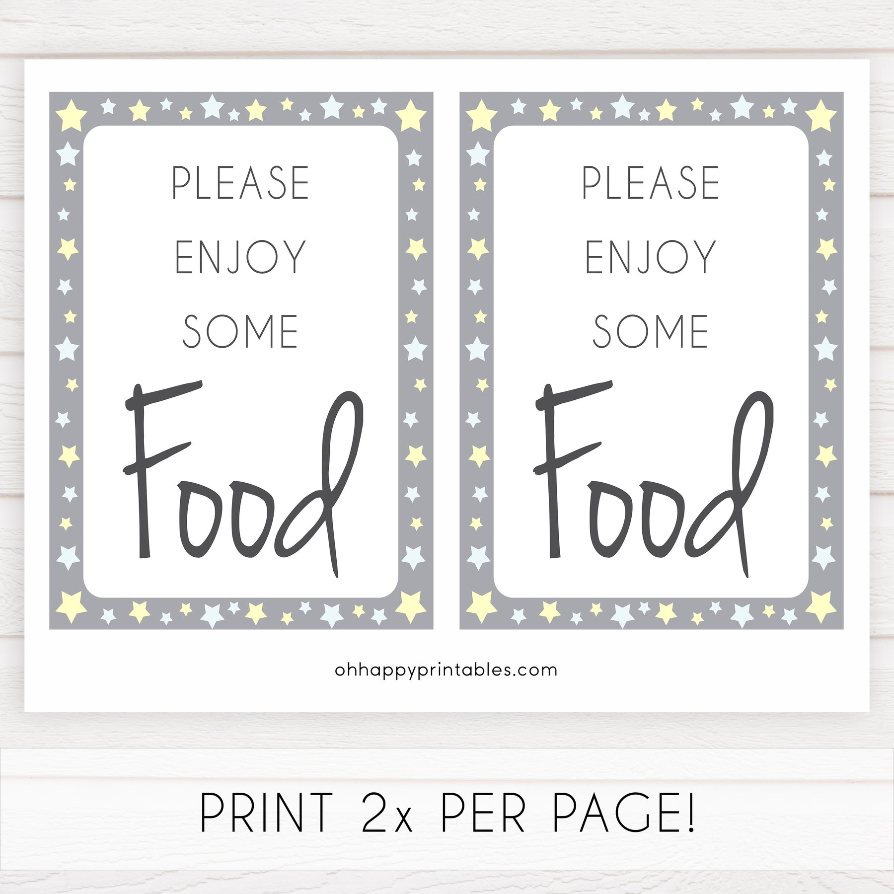 Add the finishing touch to your baby shower with this 'Food' table sign.