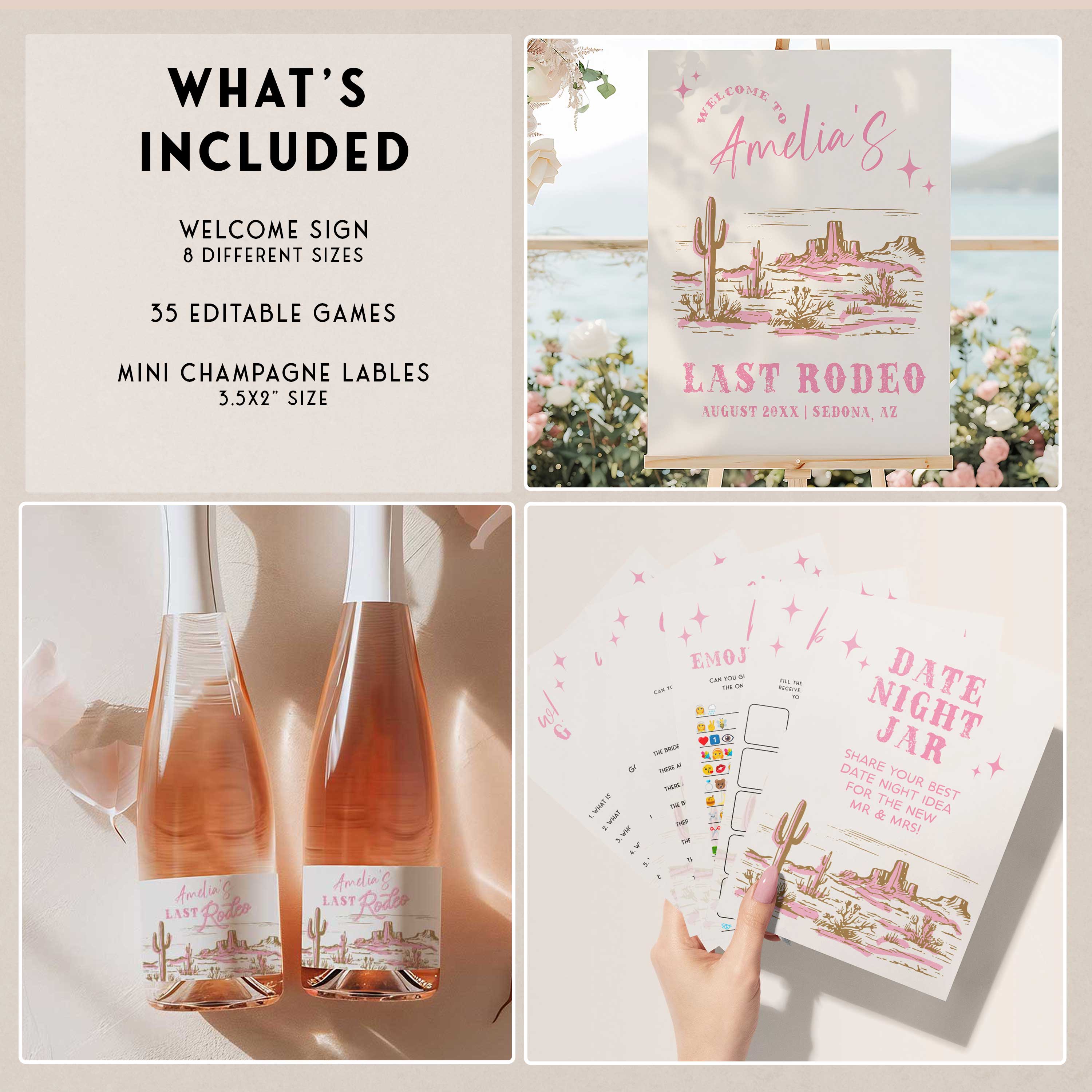 Introducing our Her Last Rodeo Bachelorette Bundle - the ultimate party starter for the bride-to-be and her girl squad! This bundle is packed with, invitation, welcome signs, 35 exciting games, thank you tags, a custom sign, and more to make your bachelorette one to remember.