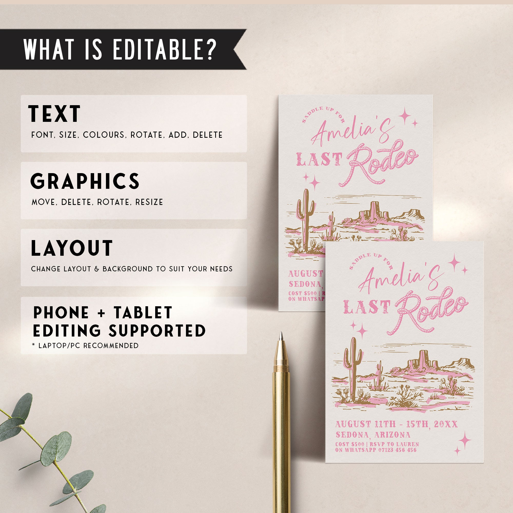 Celebrate your bachelorette with our 'Last Rodeo' bachelorette invite! Featuring a rodeo theme, this editable invitation sets the perfect tone for a your special day. Personalise and send today! It couldn't be easier.