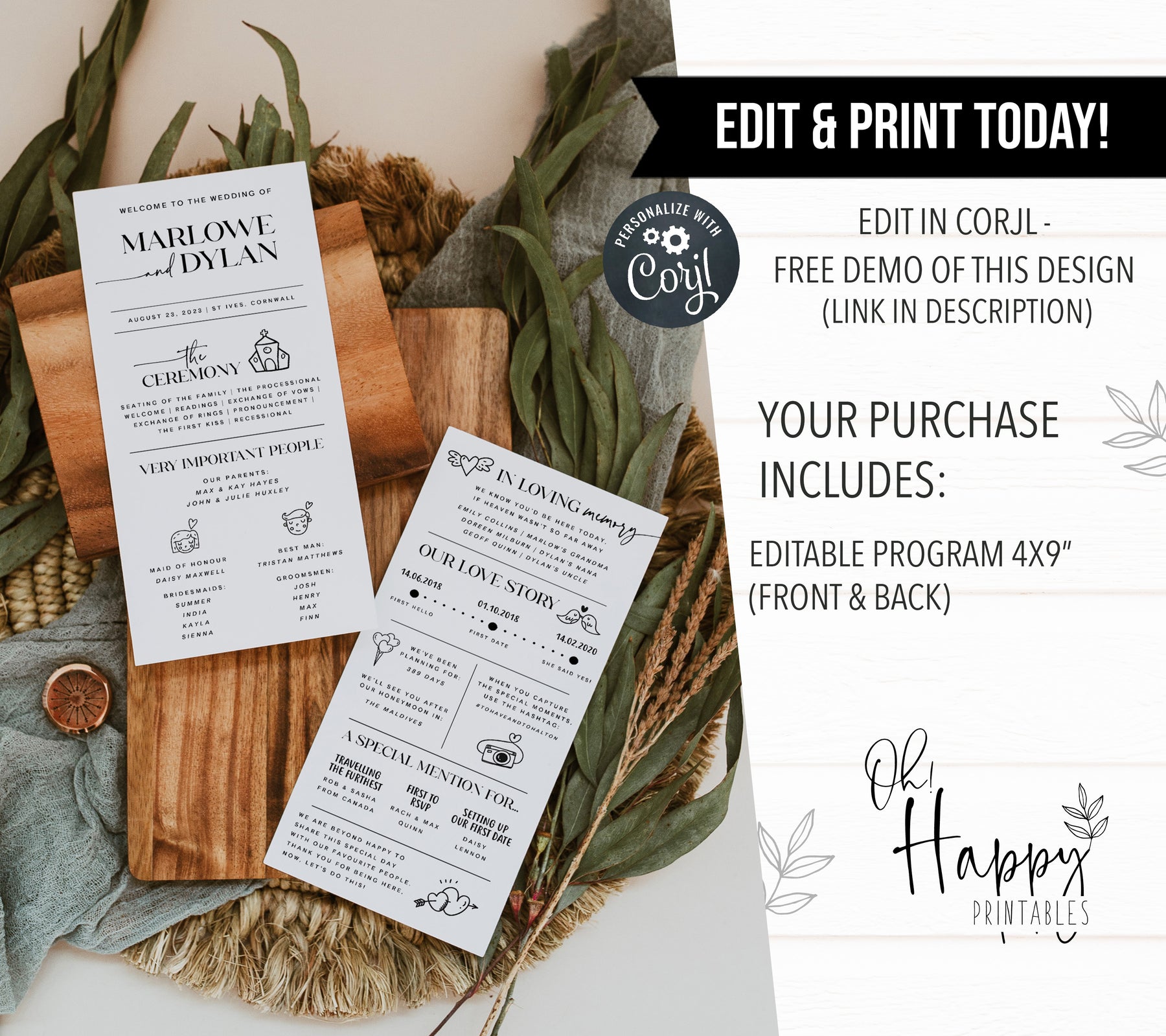 EDITABLE PROGRAM - 4 X 9" (front & back included)