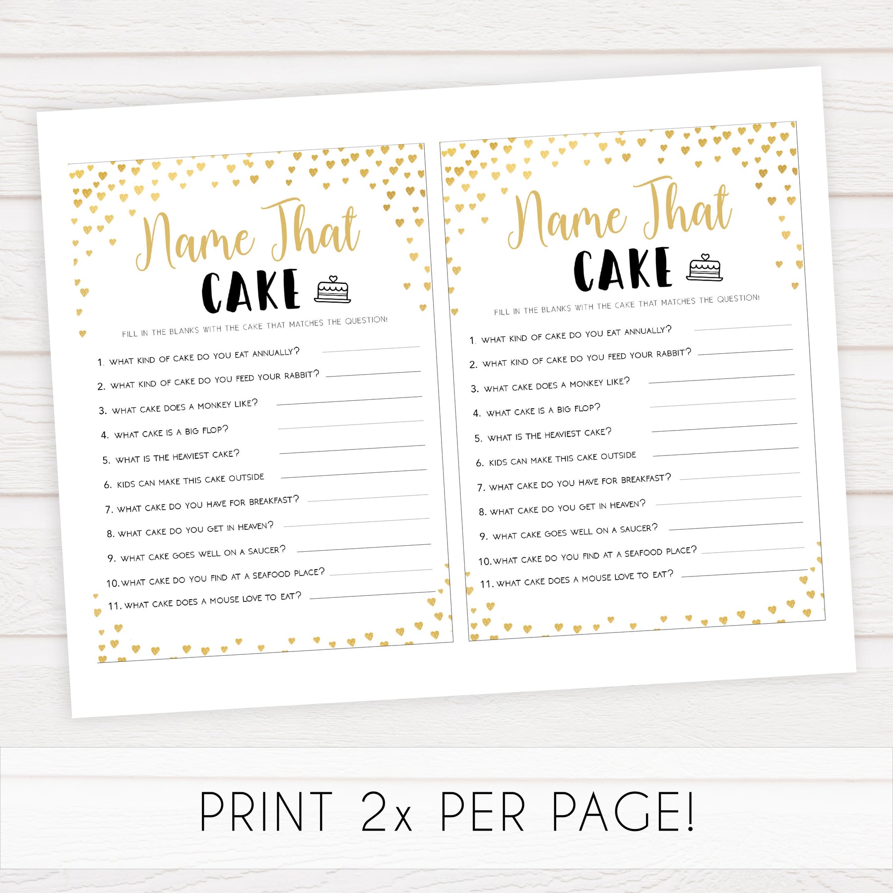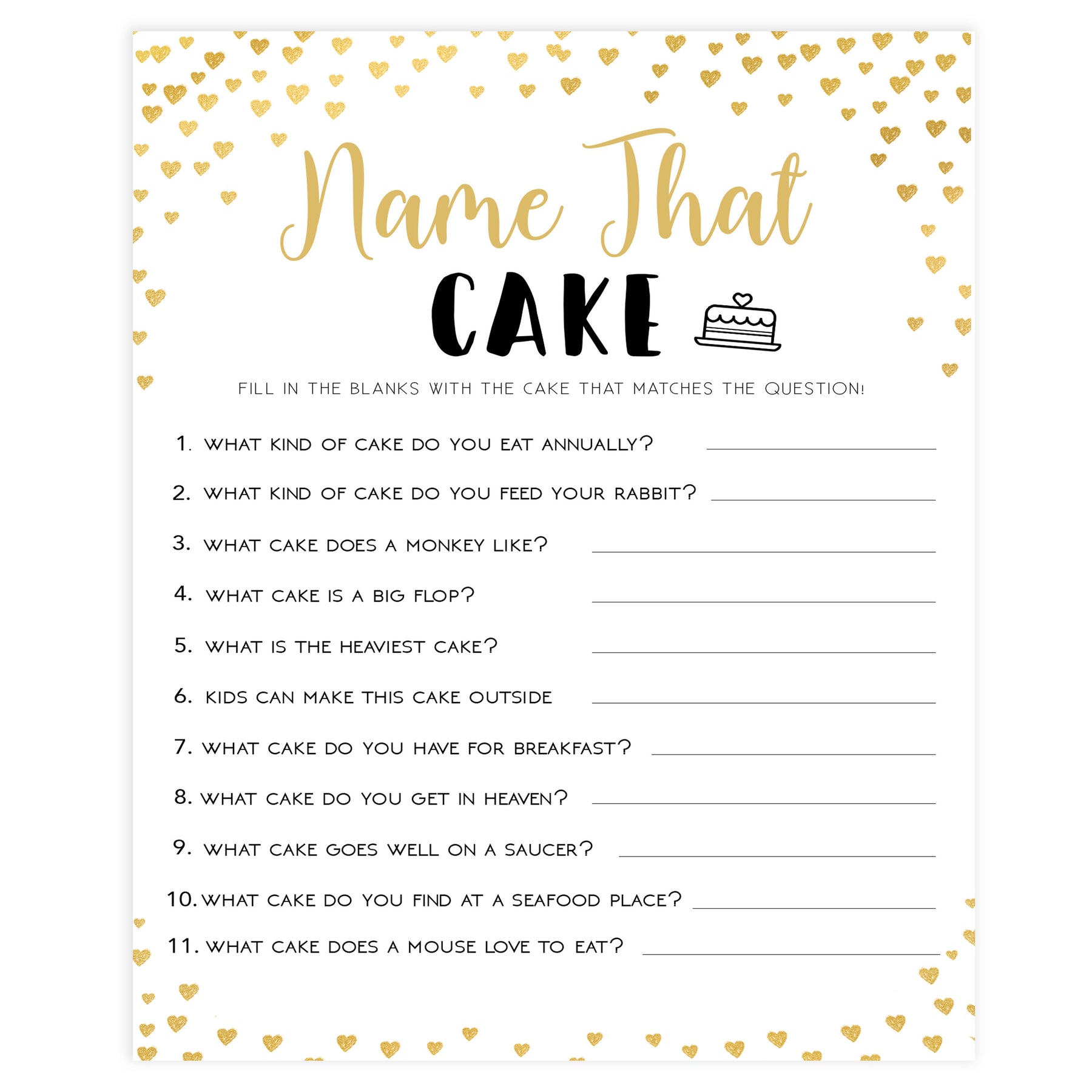 Gold hearts bridal shower games, name the cake, printable bridal games, gold bridal games, gold hearts bridal games, fun bridal games, top bridal games, best bridal games