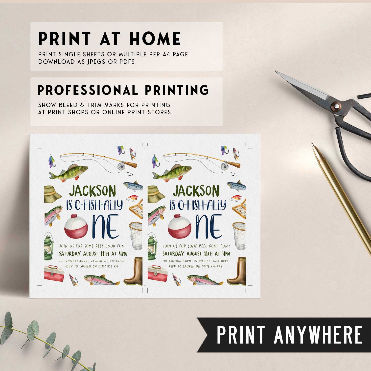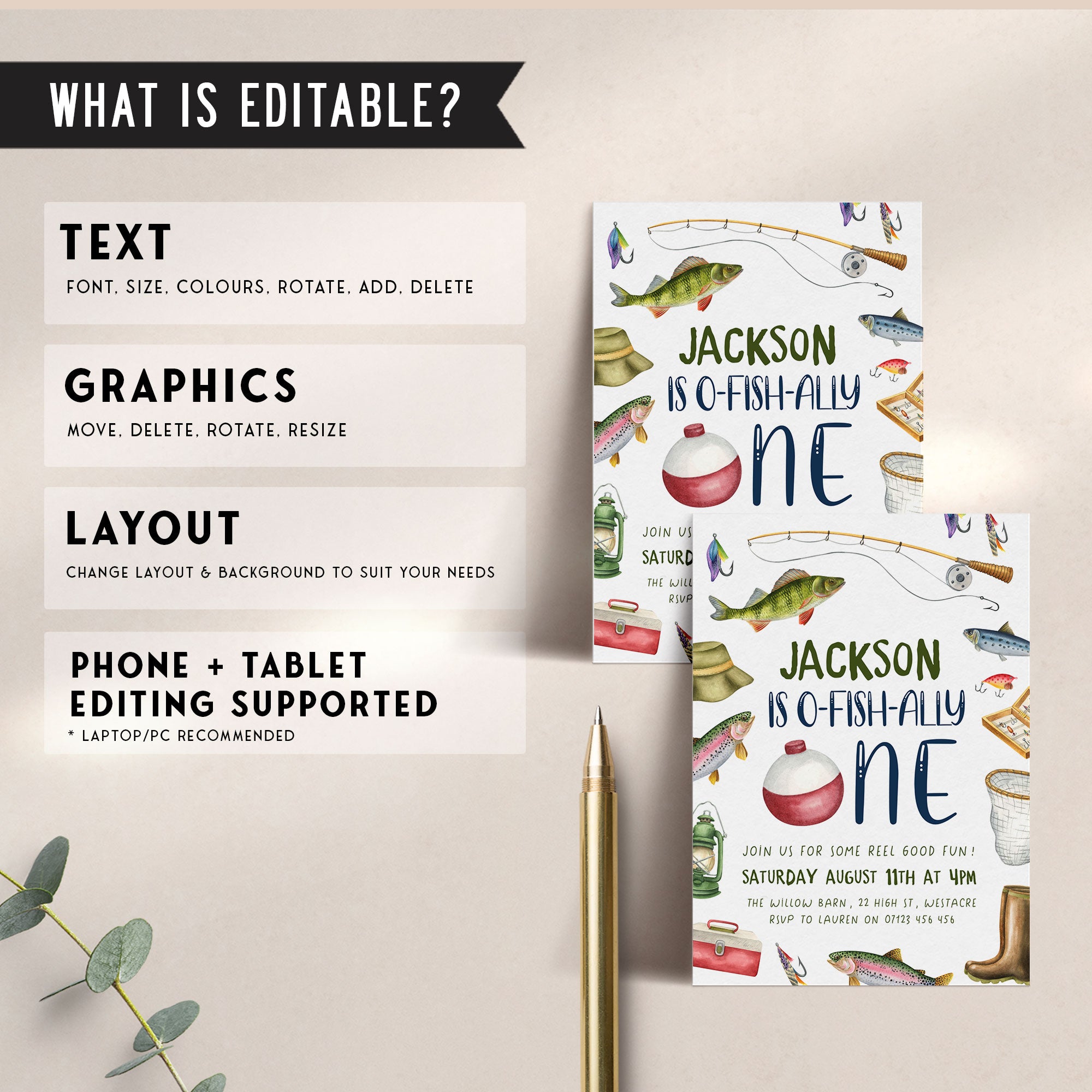 Make your little one's first birthday extra special with our Editable O-Fish-Ally One First Birthday Invitation Set. This set includes both 5x7 printable invitations and mobile-friendly version, with adorable fishing illustration. Customise the text to add your child's name and birthday details. Whether you choose to print or share digitally, our invitations gives you ease and flexibility. Let our editable O-Fish-Ally-One First Birthday invitation Set set the perfect tone for a memorable celebration honouring your little ones first birthday.