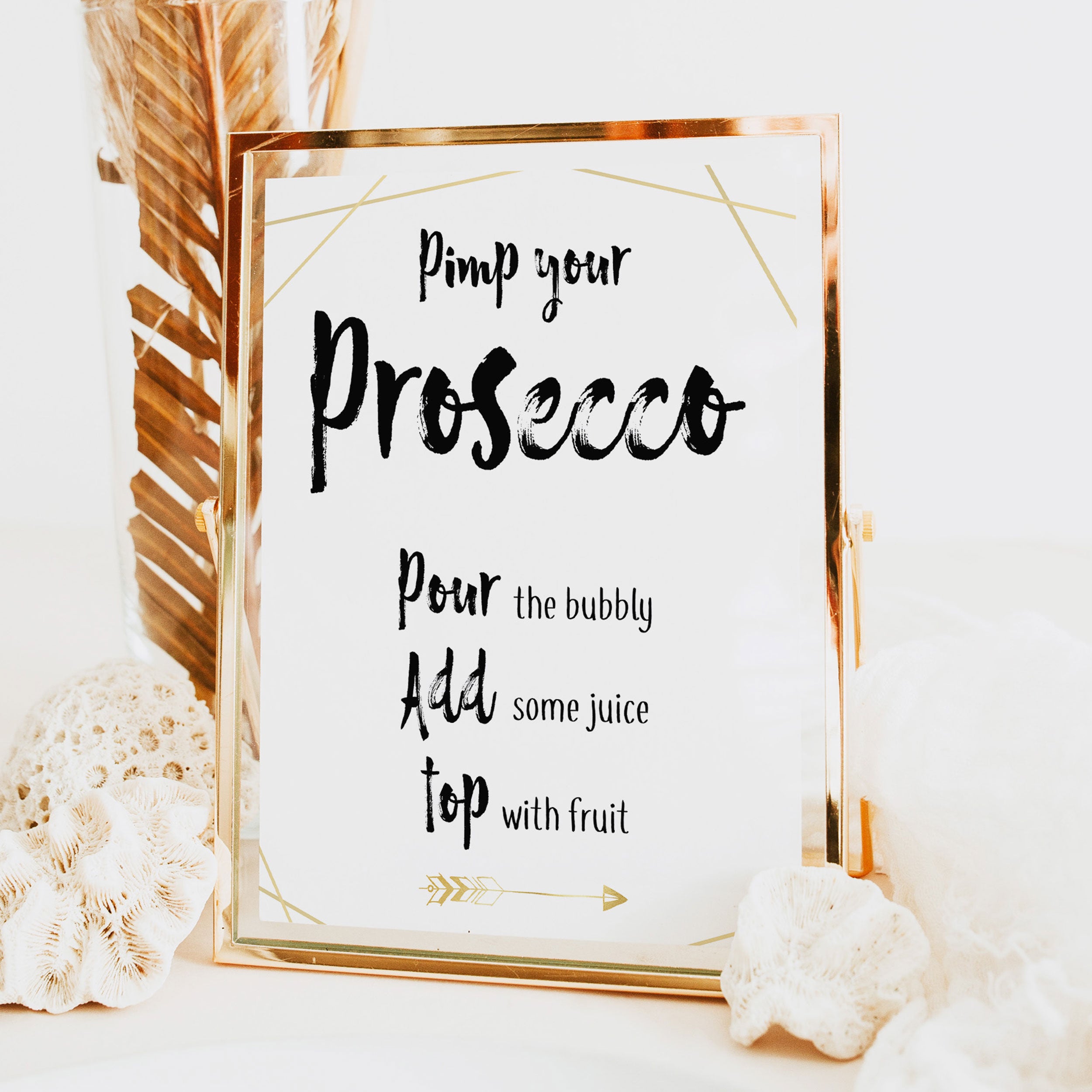 A prosecco bar is an essential at any bridal shower! This sign shows your guests how to make the most of their glass of fizz, with fun instructions you can place on the table. Simply download and print at home, it couldn't be easier.