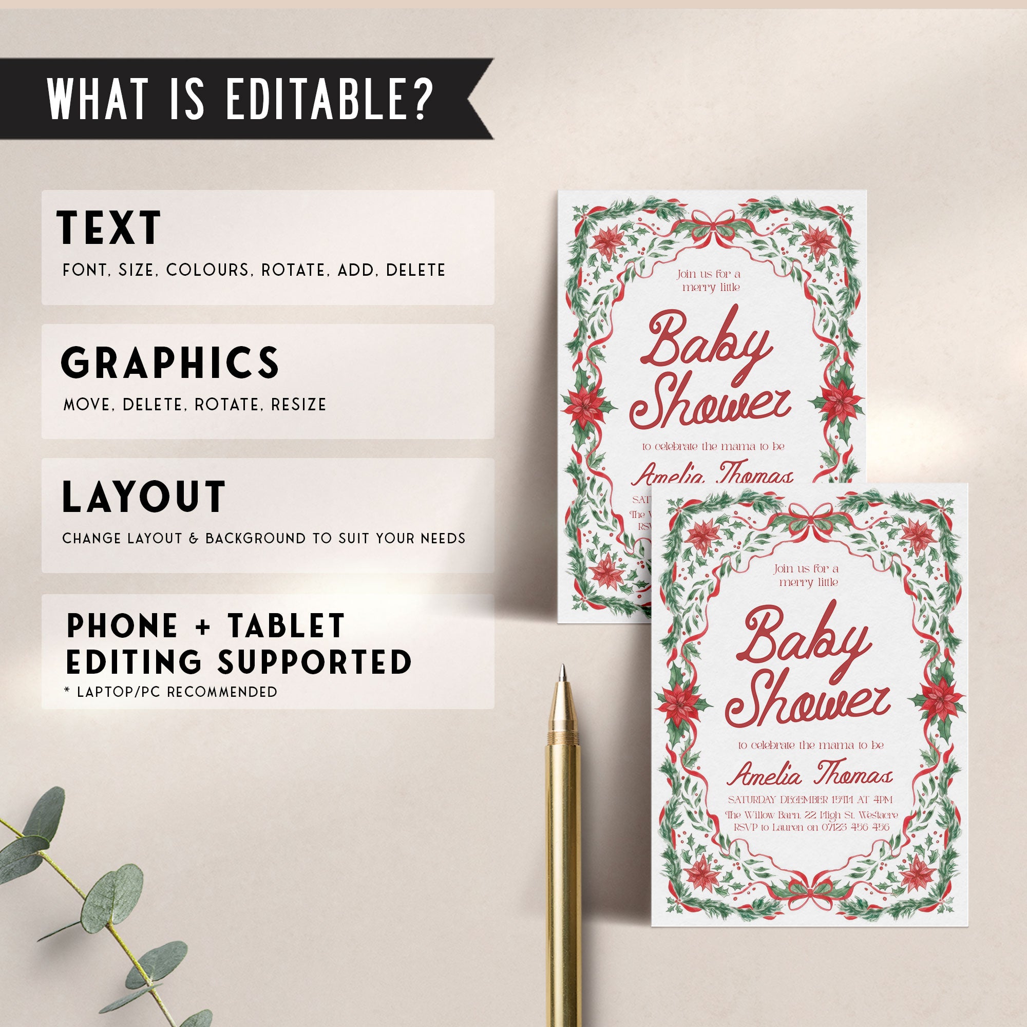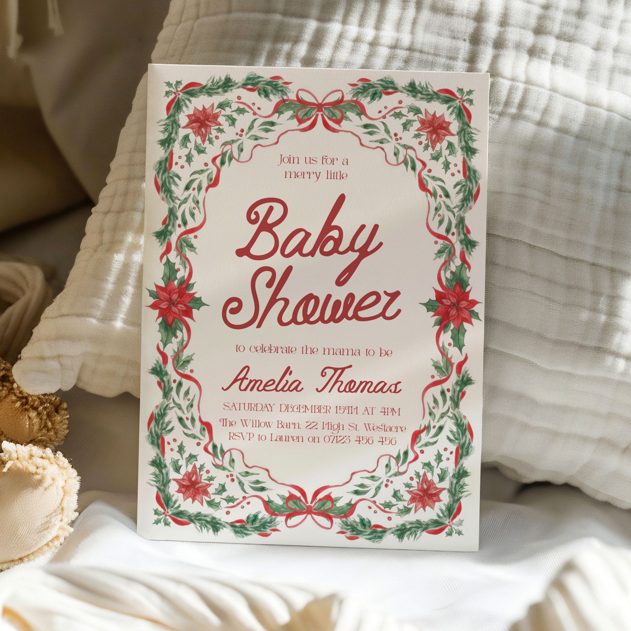 Celebrate the sweetest new arrival with our "Christmas" baby shower invitation – a charming, winter-themed design perfect for modern moms and cozy gatherings! Customise effortlessly and print today, it couldn't be easier.