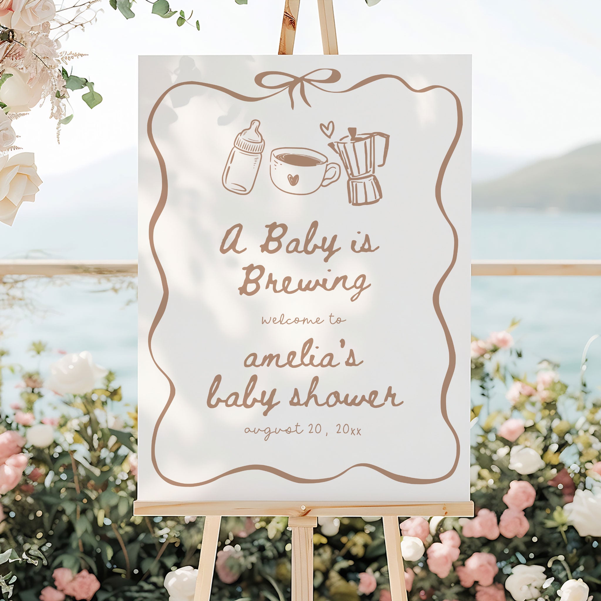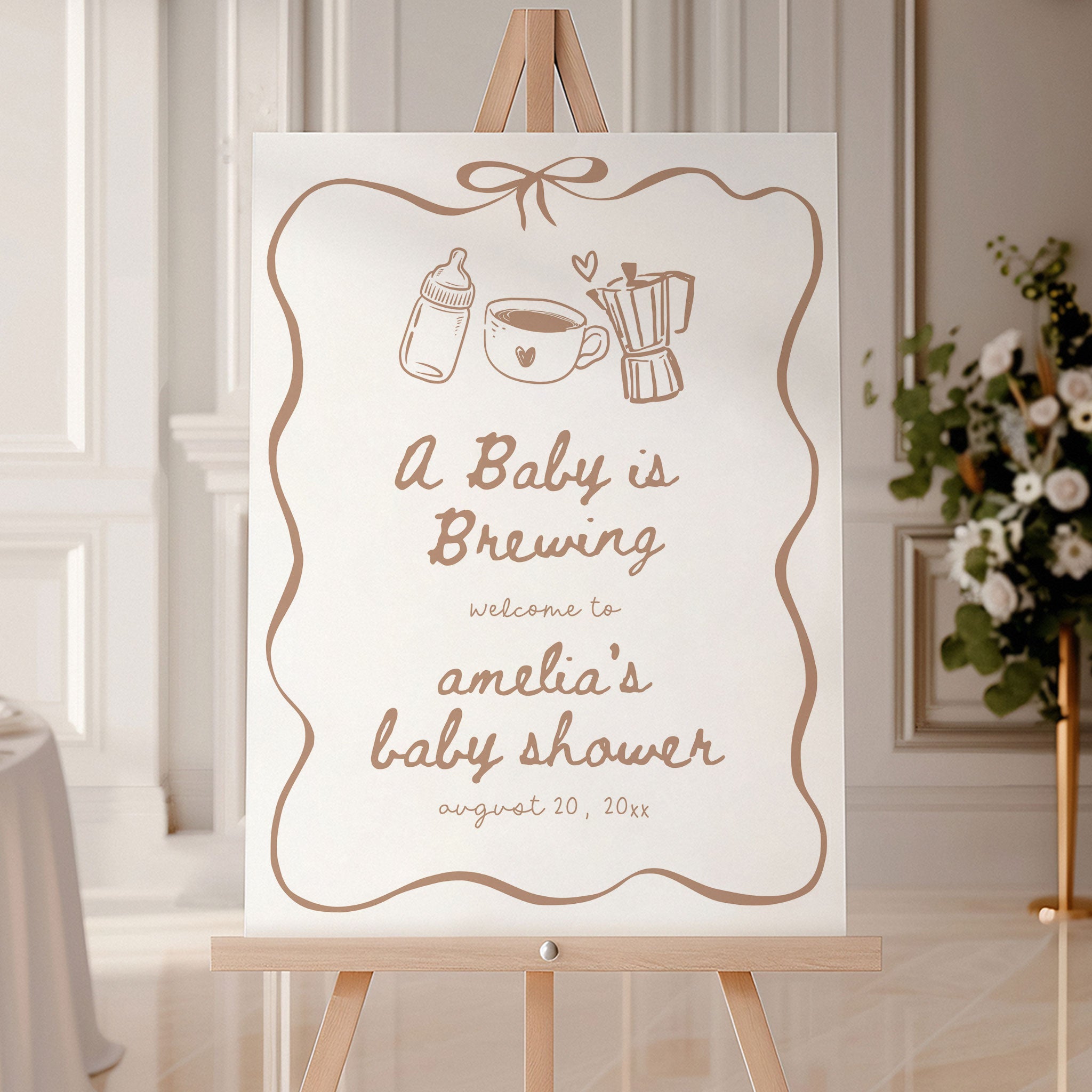 Introducing our editable A Baby Is Brewing Baby Shower Welcome Sign editable template. This is the perfect addition to your little ones baby shower. This fully editable sign can be customised to fit your unique style and preferences, allowing you to add your own text, change the font, and layout.