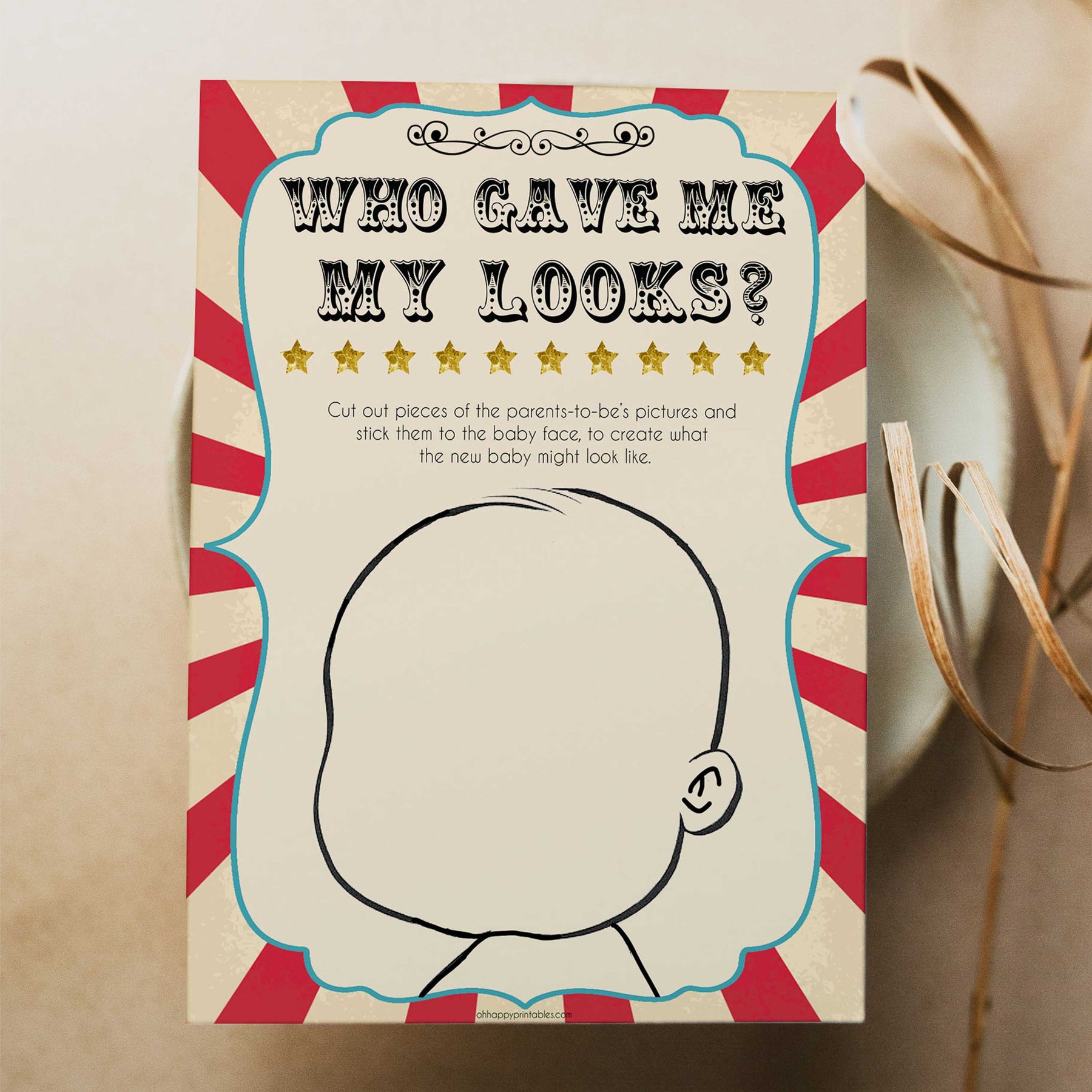 Circus who gave me my looks shower games, circus baby games, carnival baby games, printable baby games, fun baby games, popular baby games, carnival baby shower, carnival theme