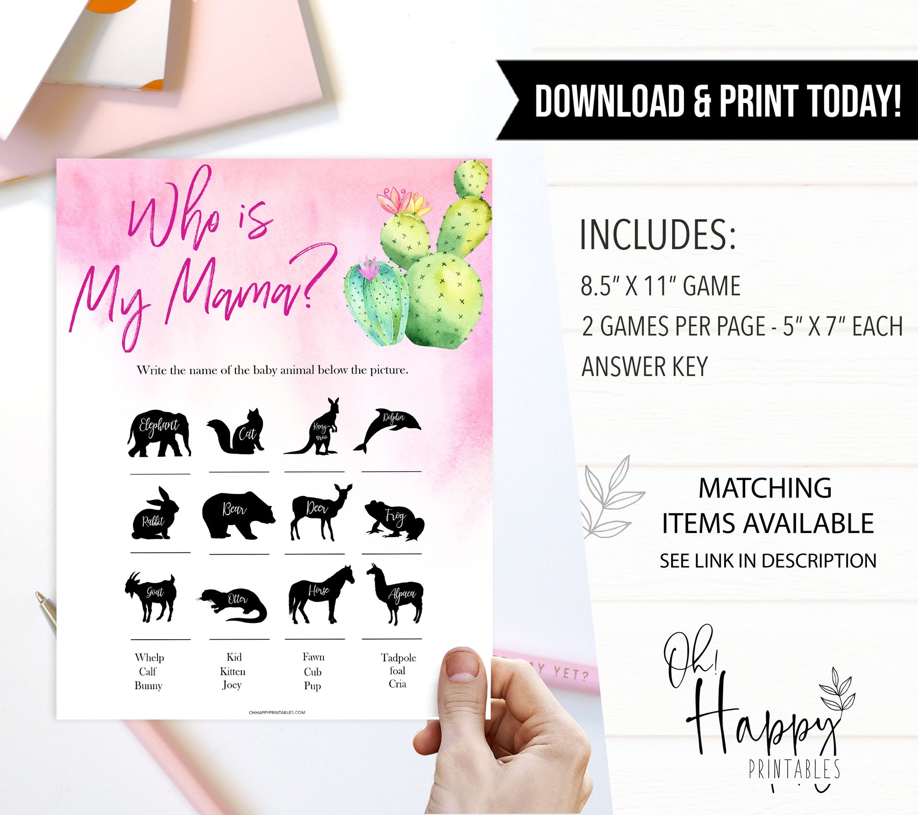 Cactus baby shower games, cactus who is my mama baby game, printable baby games, Mexican baby shower, Mexican baby games, fiesta baby games, popular baby games, printable baby games