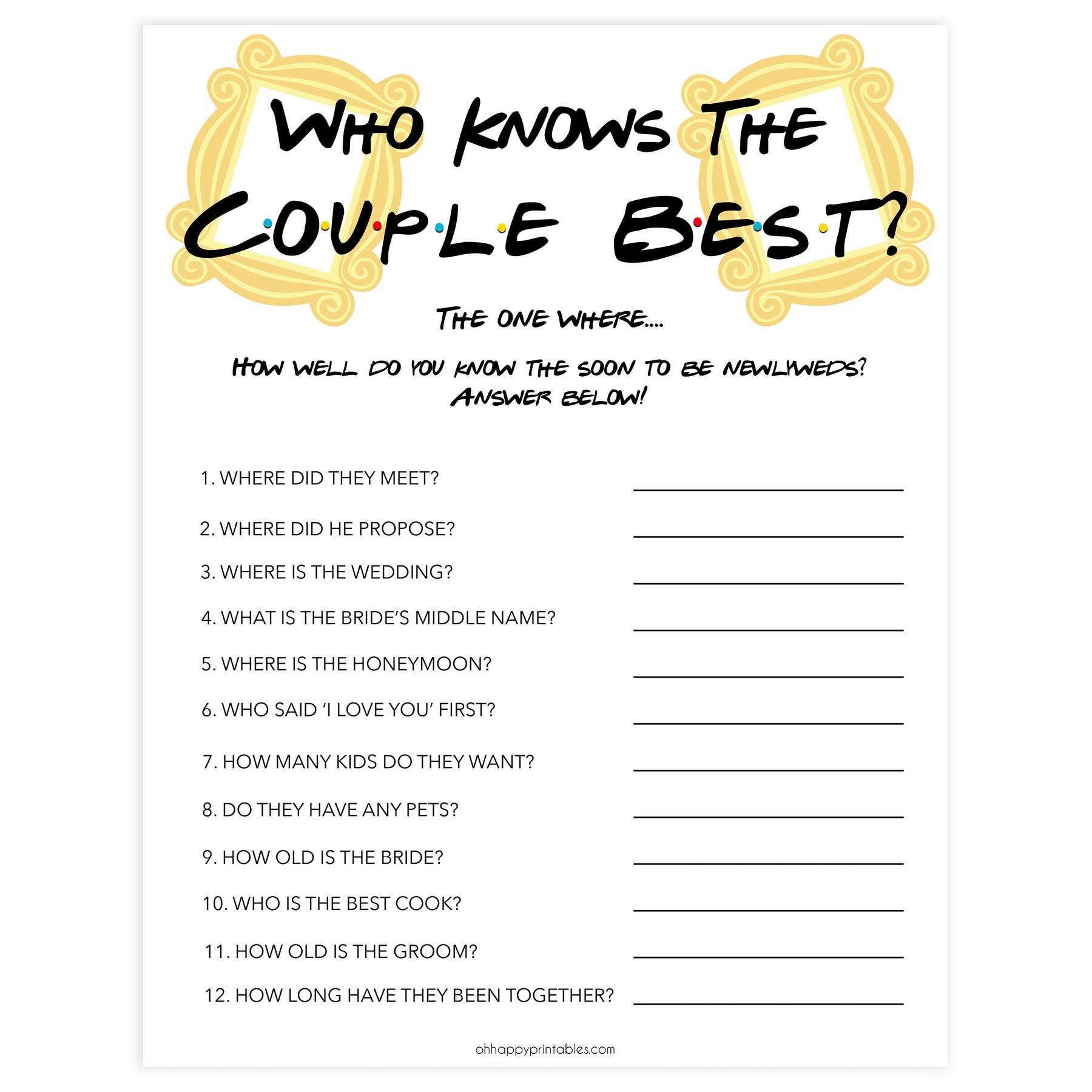 A perfect game for co-ed wedding showers, Who Knows the Couple Best is a great way for friends of the couple to share their knowledge! A fun and lighthearted game that's perfect for getting the party started.